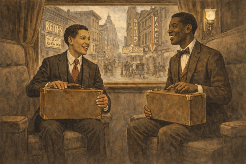 The bit is a hit, and soon, the comic duo, now billing themselves as “Two Real Coons,” is off to New York. Their uptempo rag as they travel from San Francisco to New York stops abruptly when they find themselves staring up at a large vaudeville house in New York. Their lifelong dream now directly in front of them, they’re faced with fear that turns to determination.