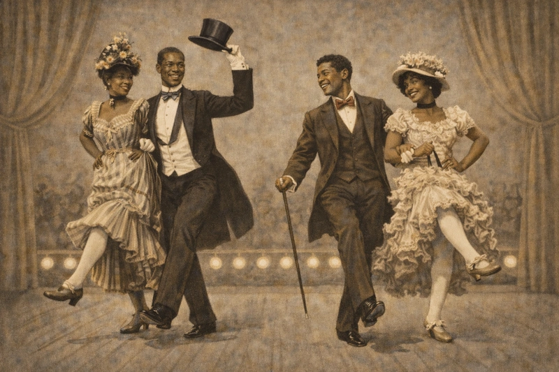 Bert, George, and their future wives, Aida and Lottie, perform a Cakewalk that sets off an international dance craze, taking them around the world to teach and perform it.