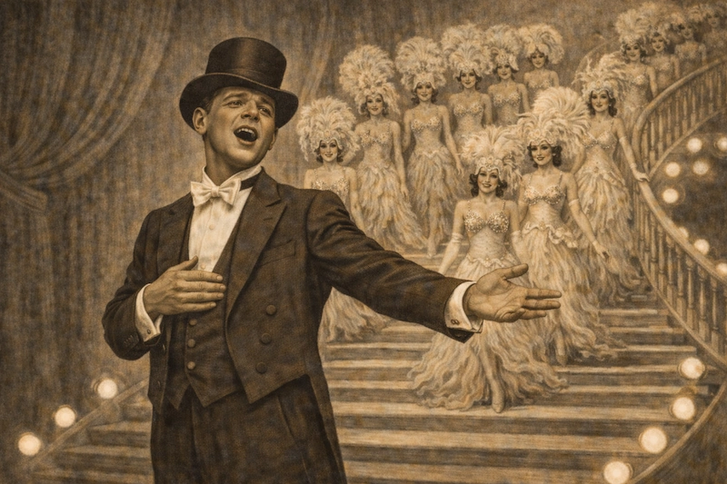 Charlie is rehearsing a song for the 1910 Follies.